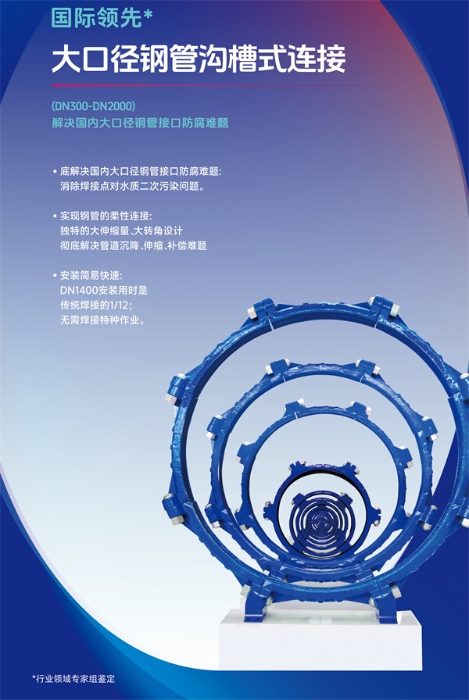 大口徑鋼管溝槽連接一直廣泛應用于國外發達國家,技術成熟且具有百年歷史;依托玫德集團強大的研發團隊打破技術壟斷,并順應行業發展方向,重點推廣創新的大口徑鋼管(DN300-DN2000)溝槽式連接解決方案;大口徑溝槽管卡分為三部分組成:膠圈、多瓣式管卡、螺栓。適用埋地工況、水利長距離輸水管網、市政綜合管廊等。