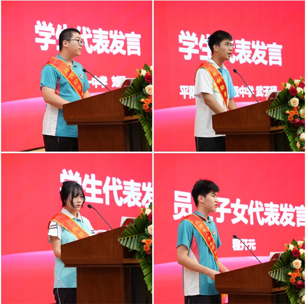 平陰一中劉旸、平陰實驗高中武子碩、平陰工業學校王國慶和玫德集團員工子女程開元作為學生代表分別發言,誠摯感謝玫德集團的鼎力支持,感恩瑪鋼助學基金二十年如一日的守護。他們表示,無論身在何方,都會做家鄉的宣傳者,做玫德精神的傳承者!